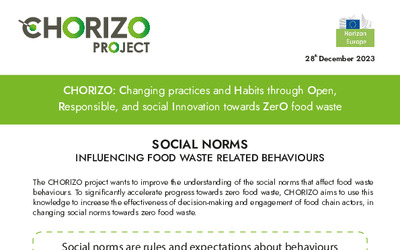 CHORIZO aims to improve the understanding and knowledge to increase the effectiveness of decision-making and engagement of food chain actors in changing social norms towards zero food waste. The project is focused on (i) building upon previous FLW actions, (ii) generating new evidence on social norms & FLW behaviours, (iii) utilising advanced modelling techniques to produce solutions that integrate behavioural and economic theories and embedding research results into innovative products that can foster a change of FLW-related social norms.